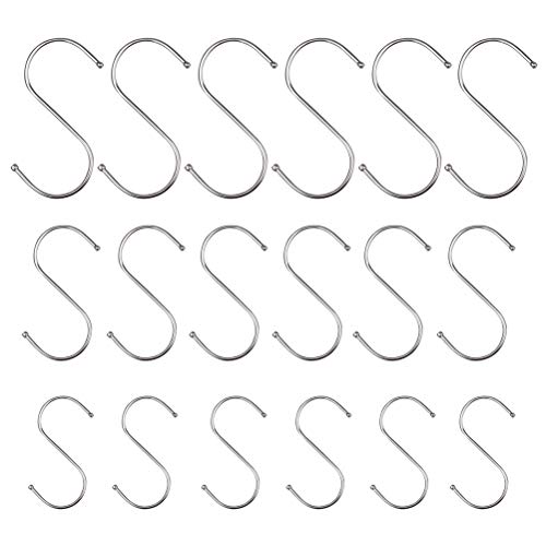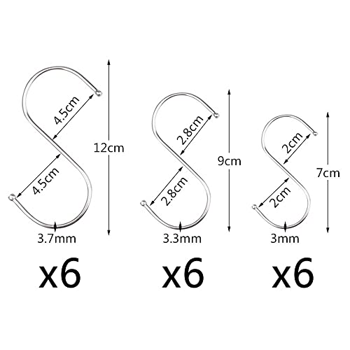 18 Stück S Haken Edelstahl, 3 Größen Küchenhaken Haken zum Einhängen Aufhängen Haken für Küche, Bad, Schlafzimmer (12cm…
