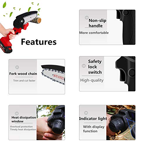 ✂[Verbesserte Mini-Kettensäge 4 Zoll] Eine wiederaufladbare drahtlose Säge.Leichtes Design, langes Halten und nicht müde Hände.Die 4-Steuer-Führungsplatte und die Kette sind krass verschleißfest, sodass Sie reibungsloser Mähen können