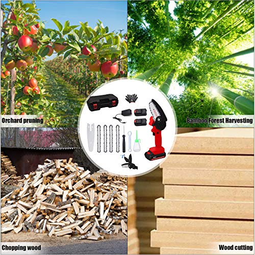 ✂[Komplettes Zubehör]Zum Zubehör gehören 2 Batterien, 4 Ketten und ein Paar Handschuhe,Ist ein guter Helfer für Ihre Ausarbeitung.Weit verbreitet in Gärten, Landschaftsgestaltung, Bauernhöfen usw