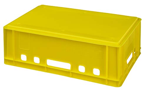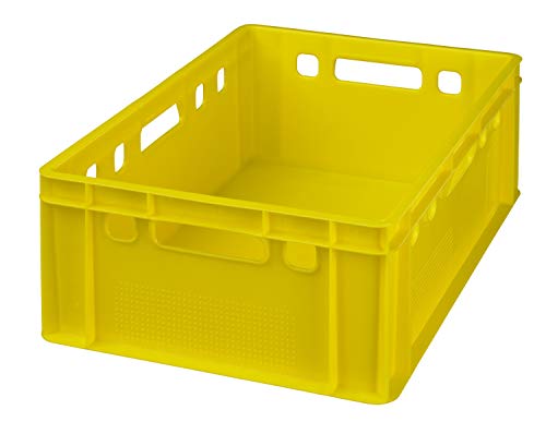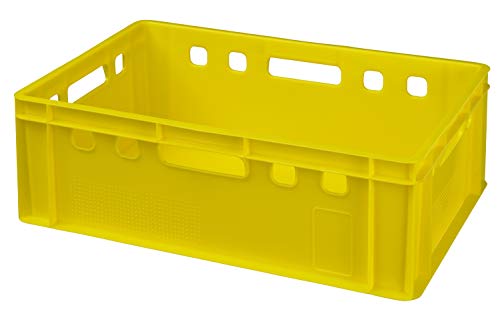 5 Ausschnitt Eurokasten E2 Außenabmessungen (LxBxH): 600 x 400 x 200 mm Material: Kunststoff (HDPE) Ballast: 2,0 kg Volumen: 40 ltr. Farbe: gelb Der E2-Kasten ist millionenfach bewährt auch der Standardbehälter in der europäischen Fleischindustrie. Der Boden auch die Seitenwände sind geschlossen auch der Behälter ist qua vier Handgriffen ausgestattet. Anstatt das Hinzufügen auch das einfache Losschnallen von Etiketten sind an allen vier Seiten Noppenfelder angemessen. Die E2-Aeroplan ist kompatibel auch stapelbar qua anderen Behältern der E-Spalier.