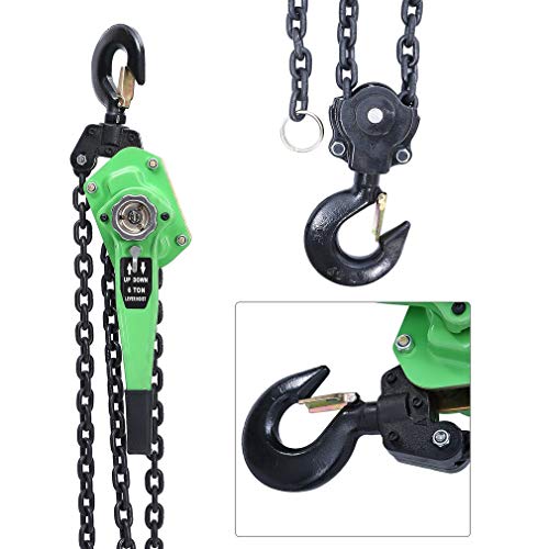 【Langlebig und benutzerfreundlich】 Hubkette aufgebraucht verzinktem G80-Manganstahl mit hoher Intensität, hoher Zähigkeit und langer Lebensdauer. Gummierter Griff für sicheren Halt und bequeme Handhabung, einfache Bedienung und Wartung
