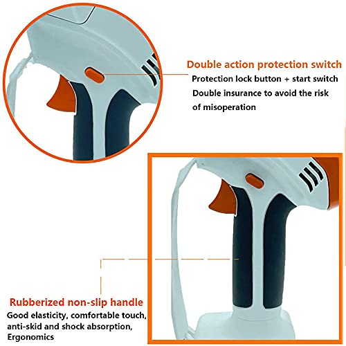 【Sicherheitsstartschalter】akku kettensäge mit akku und ladegerät kann doch gestartet werden, nachdem der Sperrschalter gedrückt wurde, wodurch ein versehentliches Starten der Maschine wirksam verhindert und das Verursachen von Verletzungen vermieden werden. Die elektrische Kettensäge ist mit einer Schutzbrille ausgestattet, um zu verhindern, dass Holzspäne und sich schnell bewegender Untergang durch Ihre Augen fliegt