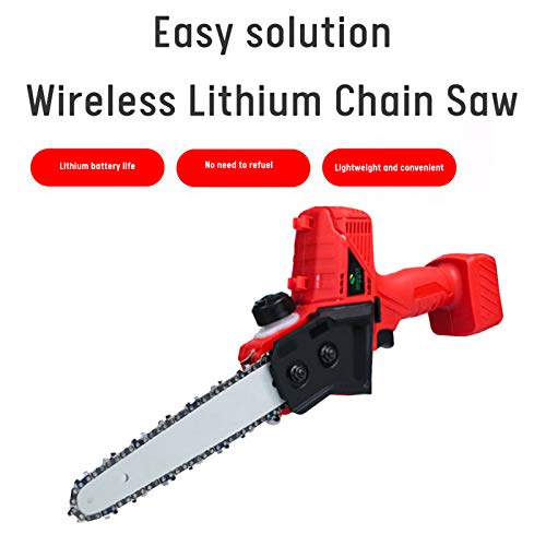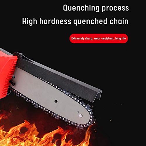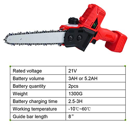 – Wiederaufladbare elektrische Kettensäge, leicht und tragbar, lange Akkulaufzeit, keinebeschädigung der Rinde. Leichter Körper, klein, kann mit einer Hand gehalten werden, lange halten und nicht müde Hände.