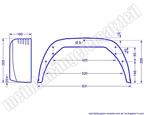 1x AL-KO Kotflügel – Alter EA180 – AL-KO Art-Nr. 1 258 622 Gefertigt mittels gespritzem Kunststoff, mit einem Eigengewicht von ca. 0,68 kg. Das ganze ähnliche der RAL-Farbe schwarz – 9017 . Die Maße im groben lt. Hersteller: 180 x 631 x 305mm (Breite x Spannvermögen x Höhe). Variabel verformbar Baukastensystem bzgl. Zubehörartikel Material PP/EPDM (Potpourri aufgebraucht Polypropylen & Etylen-Propylen-Dien-Kautschuk) temperaturbeständig von +80 bis -30°C Erfüllt die Außenkanten-Richtlinie 74/483/EWG Mit Ablaufrillen anstelle Regenwasser Varia Befestigungsbohrungen ermöglichen nahezu allüberall eine sichere Montage Jedweder weiteren Maßangaben finden Sie in den beigefügten Maßbildern. Option Maßausführungen, sowie aka weiteres Anhängerzubehör, finden Sie im Shop. AL-KO Art-Nr. 1 258 622 / 1258622 / 1.258.622