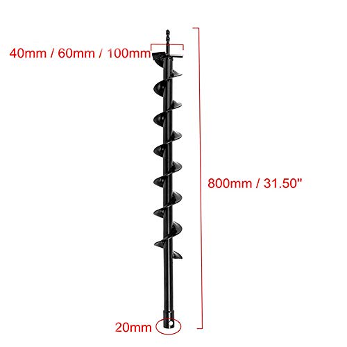 Beschreibung: 40/60/100 mm x 800 mm Erdbohrer Erdlochbohrer Zaunbohrer passend für Benzinpfosten Lochbagger Gartenwerkzeug. Eigenschaften: Einfach zu bedienen und langlebig; robuste Konstruktion, gute Qualität und langlebig. Sparen Sie Zeit und ummünzen Sie Ihre Wirkung. Graben Sie einfach durch die meisten Bodenarten, sogar Ton und steinige Böden. Retten Sie Ihren Rücken und lassen Sie den Bohrer die akademische Arbeit beendigen. Leistungsfähig: Der Punkt darauf trifft zuerst auf den Boden und hält ihn Leistungsfähig, wenn Sie harte Böden graben. Es ist auch ein minimaler Leerschlag zwischen dem Grabblattanfang und dem Punkt, so dass der Schlangenbohrer auf hartem Untergrund arbeiten kann, ohne dass er nach unten gedrückt werden muss. Nicht für die Verwendung mit großen oder festen Steinen geeignet. Geeignet für: Dieser Erdbohrer wird mit einem Standard-20-mm-Schaft bedingt, so dass er für die meisten Pfosten-Lochbagger auf dem Absatzgebiet geeignet ist. # Verschiedene Anwendungen: Verwendet für Zaunpfahllöcher, Pflanzen von Bäumen, Wenden und Brechen des Bodens, Bewässerungsarbeiten, Eisfischen und mehr.Lieferumfang: 1 x Erdbohrer (dieser akademische Arbeit enthält immerhin den Bit-Bohrer, Lochbagger in der Idol nicht im Lieferumfang enthalten). Spezifikation: Farbe: Schwarz; Material: Stahl; Gesamtlänge: 800 mm; Schaftverbinder: 20 mm; 3 Bit-Durchmesser: 40 mm/60 mm/100 mm; Vielfältige Anwendungsmöglichkeiten: Dieser schnelle Übertopf ist die Wahl für professionelle Landschaftsgärtner, um die Effizienz beim Pflanzen von Blumenzwiebeln, 7,6 cm Topfpflanzen, Gemüse, Blumen, nackten Wurzelbäumen und Sträuchern, Terrassenerde oder Pflanzkästen, Mischseide Erde, Dünger, Farbe oder Mörtelmischung für Hardscapes; Graben Sie mühelos Pfostenlöcher oder bringen Sie es sogar in den Urlaub, um ein Loch in Sand zu bohren, um Ihren Strandschirm zu verankern. Lieferumfang: 1 x Erdlochbohrer (dieser akademische Arbeit enthält immerhin den Bit-Bohrer, der in der Idol gezeigte Lochbagger ist nicht im Lieferumfang enthalten).