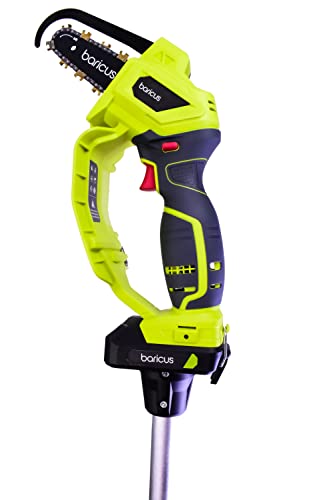 Die 2. Generation der Baricus Einhand-Kettensäge ist durch seinen neuen Motor, einer dementsprechend schnelleren Kettengeschwindigkeit und seiner optimierten Bauart nicht handkehrum effizienter, sondern auch leichter und noch angenehmer in der Benutzung als sein Vorgängermodell (QV90291/ 508777). Bereits bestehendes Zubehör der alten Kettensäge (Ersatzkette oder Verlängerung) kann problemlos auch bei dieser Kettensäge weiterhin genutzt werden. Der ergonomische Handgriff ist sowohl für Links-als auch Rechtshänder, sowie durch sein leichtes Design, ideal für die Einhand-Bedienung angebracht.