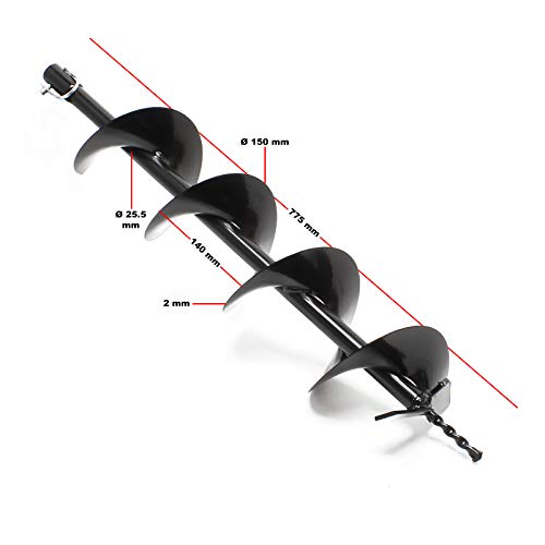 Der Bohrer hat einen Durchmesser von 150 mm und schafft so eine schnelle und saubere Bohrung. Dank der stabilen Gusseisenform ist er zudem besonders zuverlässig und langlebig. Die feste Stechspitze kann problemlos in allen Bodenformen ihr volles Potential entfalten und ermöglicht so eine akkurat Wurzelzufuhr.