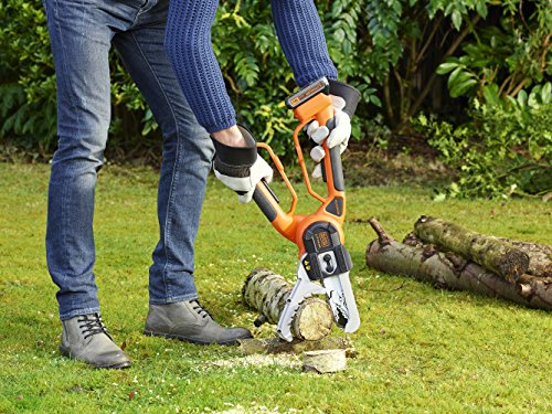 Schneidet Äste bis zu 100 mm Durchmesser ohne Anstrengung und eine gehörige Portion schneller als jede manuelle Handsäge