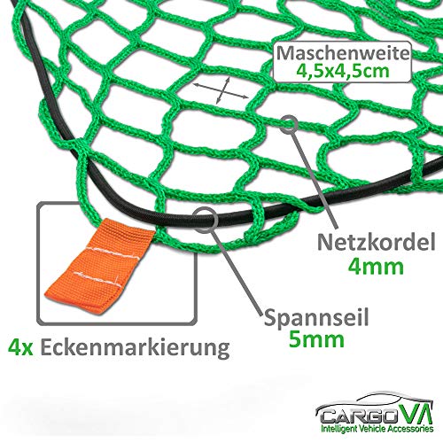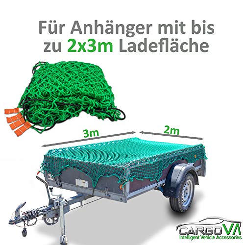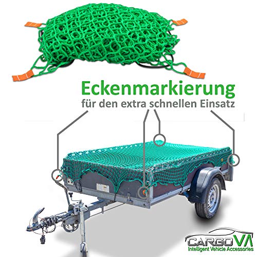 CargoVA® Anhängernetz 2x3M – Hängernetz mit Gummiseil und Eckenmarkierung – zur perfekten Ladungssicherung