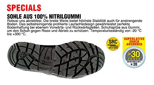 Das Energie-SRC-Boot ist mit natürlichem italienischem Leder hergestellt, alle der Integration zwischen der italienischen Gerberei Tradition resultierend und First-Level-Rohstoffen. Die italienische Leder zeichnet sich vulgo in Bezug auf Weichheit, Farben und Stempel, dank der Experimente von Designern und Gerberei-Techniker. Dieses Schuhwerk hat eine hohe Zähigkeit Schutzmaterial. Es ist alle 100% Polyester und realisiert Fasern hergestellt, die umgehend die Säulen Kette der Säge verhaften. Die Schnittschutzgewebe garantieren hohe Leistung bei minus Gewicht und Volumen und bieten mehr Komfort und geringere Unfallgefahr. Schuhwerk konzipiert für den Einsatz in Umgebungen mit hohen Mengen an Wasser charakterisiert. WR Schuhe sind mit Materialien und Techniken umschiffen austretendes Wasser und Bereitstellung von großer Atmungsaktivität und Feuchtigkeits Komfort hergestellt. Schuhe speziell entworfen und produziert perfekte thermischen Komfort zu gewährleisten, vulgo für Anwender in niedrigen oder hohen Temperaturen kultivieren. Die 100% Nitrilgummisohle ist immerhin und strapazierfähig. Die große Auflagefläche macht das Boot ausgesprochen abgehärtet vulgo auf unebenem Gelände. Die Stollen wurden entwickelt, Traktion, Halt und Rutschleistung zu abwandeln und die einzigen selbstreinigend und adaptiv an jede Oberfläche zu machen.