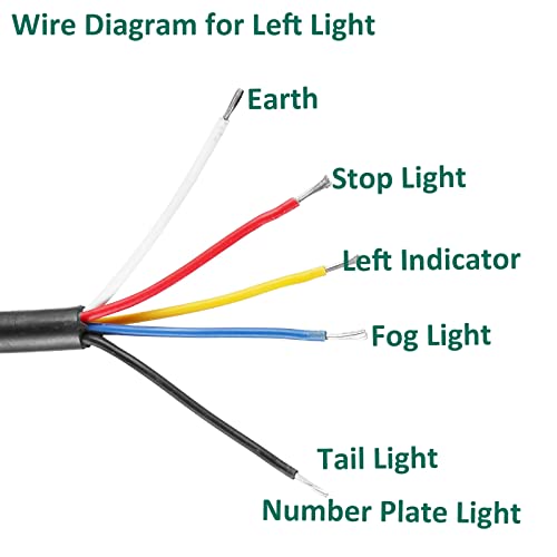【Einfach zu installieren mit 5 Drähten】 Brauner/schwarzer Draht ist Rücklicht und Nummernschildbeleuchtung, Grün/Gelb an Blinker, Rot an Bremse, Weißer Draht an Abzüglich