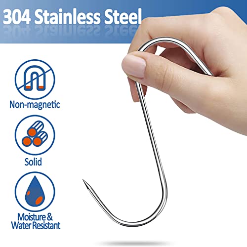 【💪Super Hohe Qualität】Fleischerhaken klein aus lebensmittelechtem Edelstahl, glatt und ohne Kerben, Magnete können nicht adsorbiert werden, kein Rost, auch salz- und säurebeständig, daher stark und langlebig.