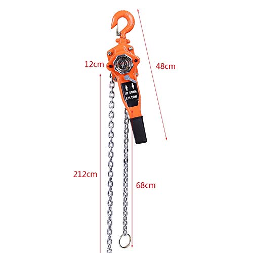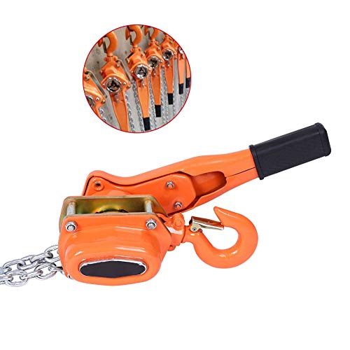 【Tragfähigkeit】 Der Hebelaufzug bietet eine Tragfähigkeit von 0,75 Tonnen für schwere Anwendungen und eine Hubhöhe von 3 Metern für ausreichend Freiraum, Die Hebekette nimmt G80-Klasse Mangan Stahl verzinkt Kette mit hoher Festigkeit, hohe Zähigkeit und lange Lebensdauer