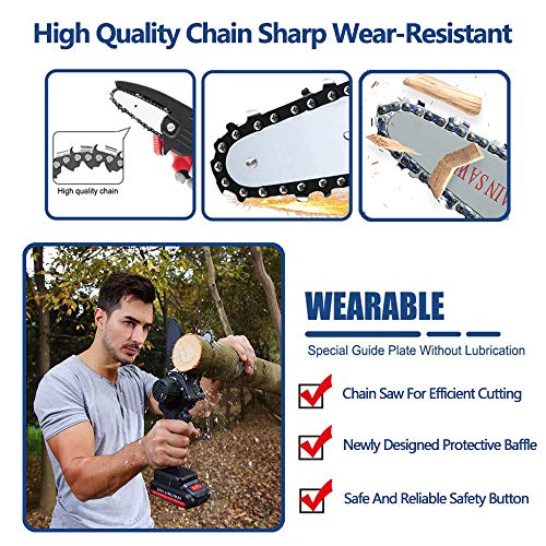 Diese Mini-Kettensäge hat ein Gewicht von ca. 0,7 kg und eine Gesamtlänge von ungeachtet 33 cm. Die Frau kann es leicht nachprüfen und benutzen, es ist nicht anstrengend für eine lange Zeit der Abhandlung.