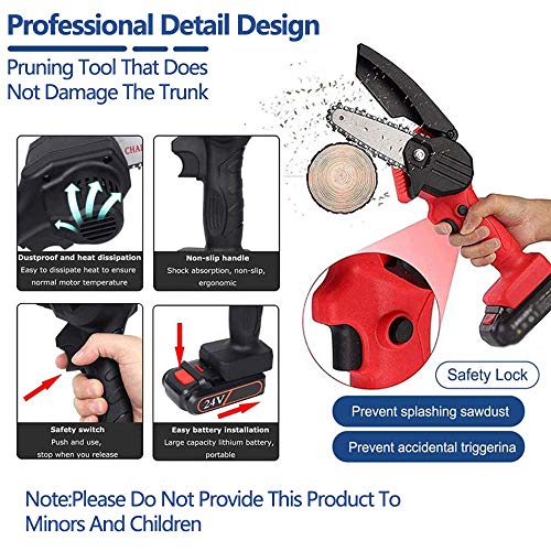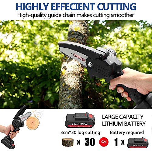 【Einfaches Schneiderlebnis】 Diese Kettensäge wird mit einer unergründlich verhärteten Kette ausgestattet, die ein gleichmäßigeres und schnelleres Abmähen gewährleistet; die 24V-Ausgangsleistung sorgt dafür, dass Sie das Holz mit einem Durchmesser von 10 bis 15 cm einfach abschneiden können, wodurch ist diese elektrische Kettensäge für das Abmähen von Ästen, Holzschnitte, Garten- und Holzarbeiten geeignet.