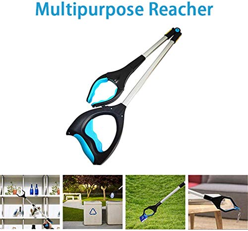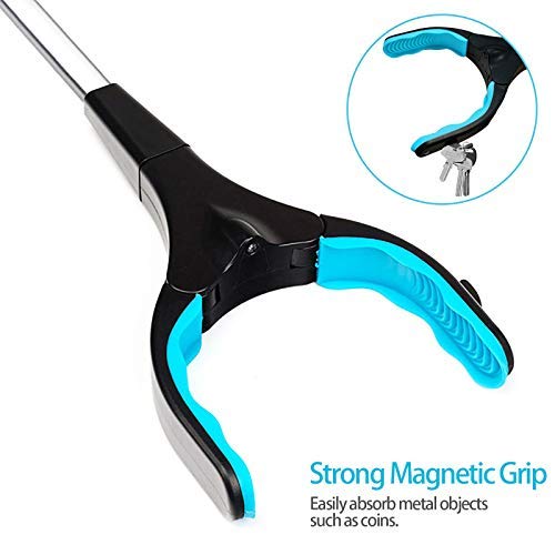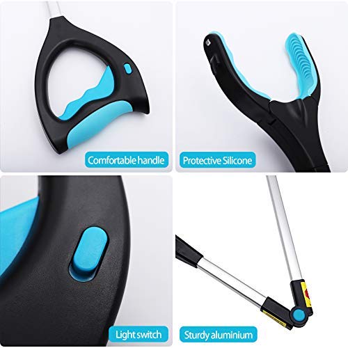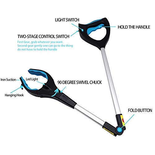 ❤ ❤ 【2021 Verbesserter Greifer mit Licht】 Dieser Greifer besteht aus leichtem Aluminium und Kunststoff. Es verfügt über einen ergonomischen Griff für eine komfortable Bedienung und der Scheinwerfer kann eine Fläche von 5 Quadratmetern beleuchten. So können Sie Objekte in dunklen Umgebungen wie Zwischenfenstern und unter Betten leicht finden. Faltbares Design: Länge (entfaltet) : 81 cm, Länge (gefaltet): 43 cm