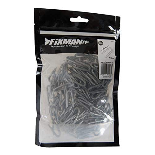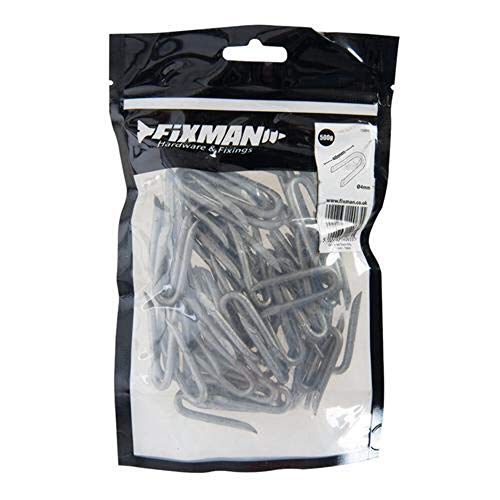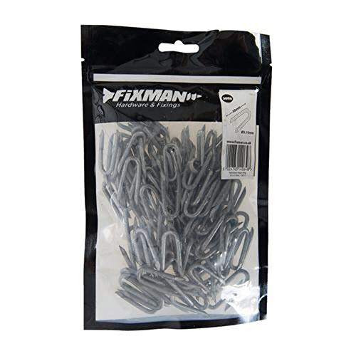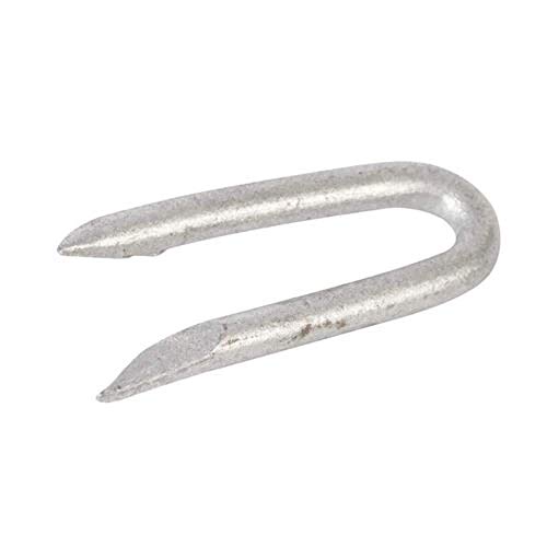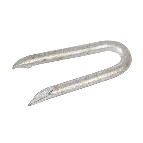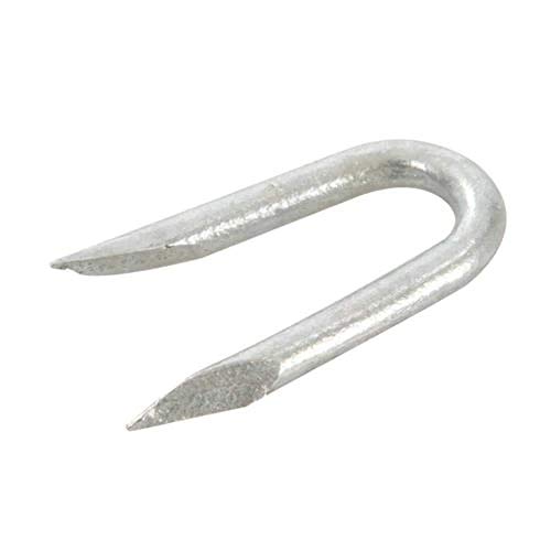 Verzinkter Stahl für Rostbeständigkeit. U-förmig mit scharfen Spitzen. Zum Halten von Drahtlängen in Position.