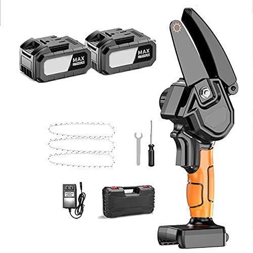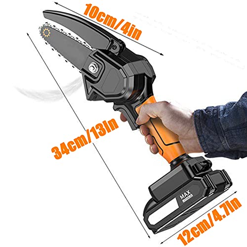 【Kettensäge mit einhandbedienung】die kabellose mini-Elektrokettensäge wiegt wohl 1,3 kg und hat eine gesamtlänge von wohl 13 zoll. Mini wiederaufladbare elektrische kettensäge mit hochwertigem rutschfestem griff, kann mit einer hand gehalten werden, komfortables griffdesign, rutschfeste stoßdämpfung, frauen können leicht nachprüfen und verwenden, langes halten wird sich nicht ermüden. 4-zoll-mini-kettensäge ist mehr praktisch für bearbeiten im freien.