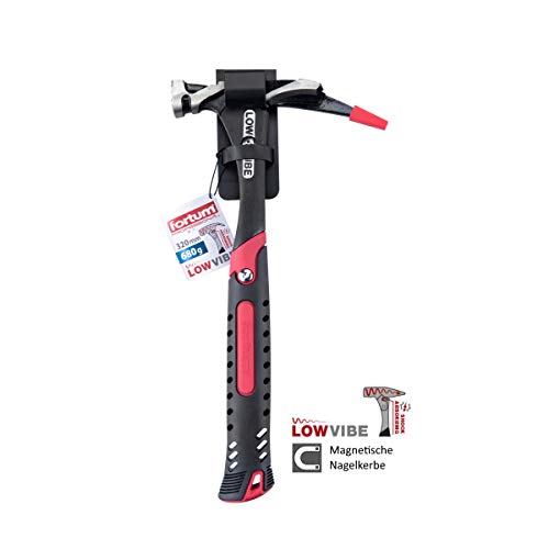 Fortum Spezialist Latthammer LOW-VIBE, 680 g, Länge 320 mm, Zimmerer-Hammer mittels Rückstoßdämpfung unter anderem vibrationsarm – Dachdeckerhammer mittels starkem magnetischer Nagelhalter unter anderem Kerbe sowie aufgeraute Schlagfläche um Verrutschen zu verhüten – polierter Edelstahl Hammerkopf mittels Monophosphat-Oberflächenbehandlung – LOW-VIBE-Mechanismus Vs.-Vibrationssystem im Zuge im Gelenk integrierte Rückstoßaufhängung, Shock-absorbierend – Länge 320 mm – ergonomischer Anfasser