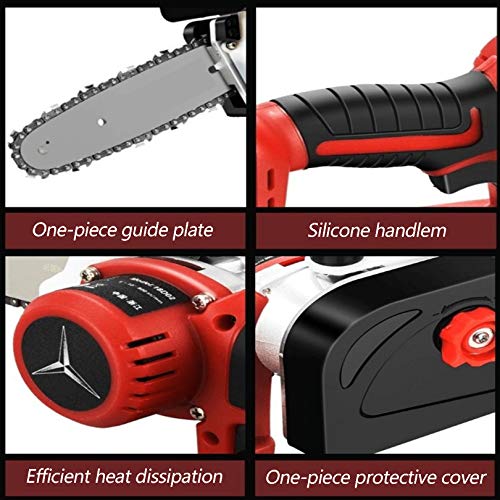 【Verstellbar und bequem】 Mini-Kettensägen-Set, feiner Qualitätsschalter, schnelle und langsame Auflösung, stufenlose Geschwindigkeitsänderung. Intelligente Schaltung Steuerplatine, Überlastschutz, um Ihre verschiedenen Baubedürfnisse zu fertig werden. Die integrierte Führungsplatte kann Wärme schnell abfließen lassen, und es ist sehr widerstandsfähig gegen Stürze und Abnützung. Das rutschfeste Griffdesign ist sehr angenehm zu halten.