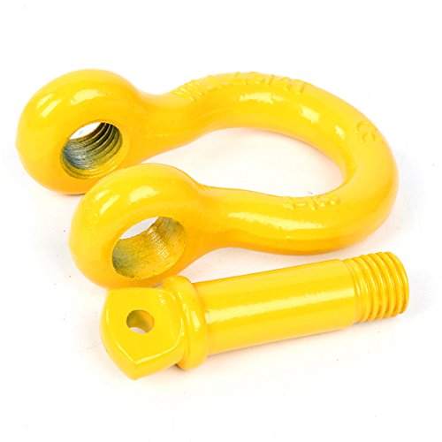 FreeTec D Ring Schäkel, 4,75t Groà Verzinkter Stahl Schäkel, 2 Stück Geschweifte Schäkel mit Augenbolzen, Schwere Schäkel Abschleppen Heben Schekel für Pkw 4×4 Offroad Seilwinde (Gelb)
