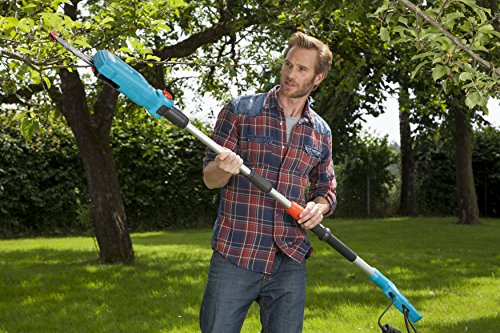 Gardena Teleskop-Hochentaster TCS Li-720/20: Elektrische Astsäge mit 720 W und 20 cm Schwertlänge, abwinkelbarer Kopf, Schneideanschlag, bis 4.40 m Reichweite, inkl. Tragegurt (8868-20)