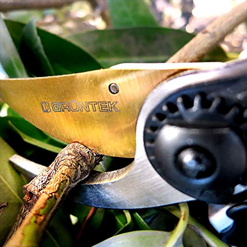 GESCHMIEDETE Spitzenbaum-, Reb-, Gartenschere TITAN-beschichtet; Präzisionseinstellungssystem sondern Klinge und Gegenklinge, Puffer und Stoßdämpfer