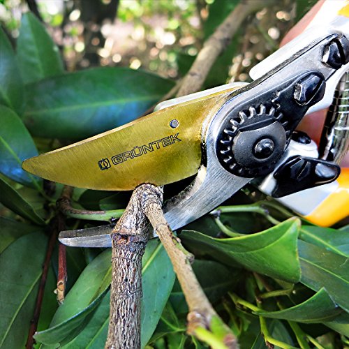 Bypass-Garten- Baumschere Z-25 von GRÜNTEK per sanftem und kraftsparendem Schneidsystem; Hohe Belastbarkeit und perfekte Kraftübertragung per abzgl. Kraftaufwand beim Mähen