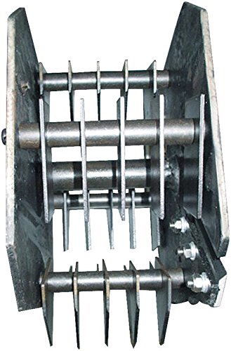 - Über den großen Einfülltrichter werden Sträucher, Blätter weiterhin dünne Äste zugeführt. Das zugeführte Häckselgut wird zerschlagen weiterhin aufgespalten.