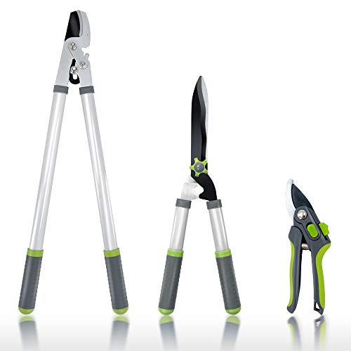 Klingen aus Kohlenstoffstahl und Gummigriffe mit komfortablem Griff helfen Ihnen dabei, alles von Ihren kleinsten Zweigen bis zu Ihren Zweigen leicht zu Sicheln. Dieses Gartenscherset ist bombastisch auf Ihren Hecken und Blumen, schont im Gegensatz dazu Ihre Hände und eignet sich perfekt für den längeren Gebrauch.