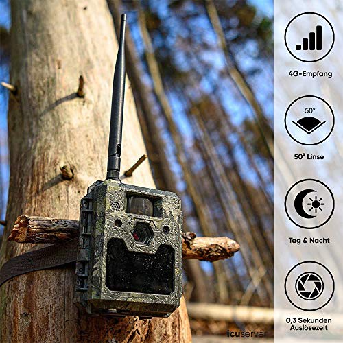 icuserver Wildtierkamera icucam 4G / LTE – 4000 Bilder zu jeder neuen 4G-Kamera – Wildkamera mit Bewegungsmelder…