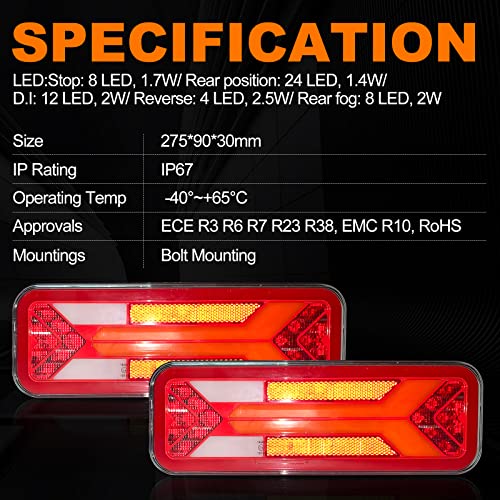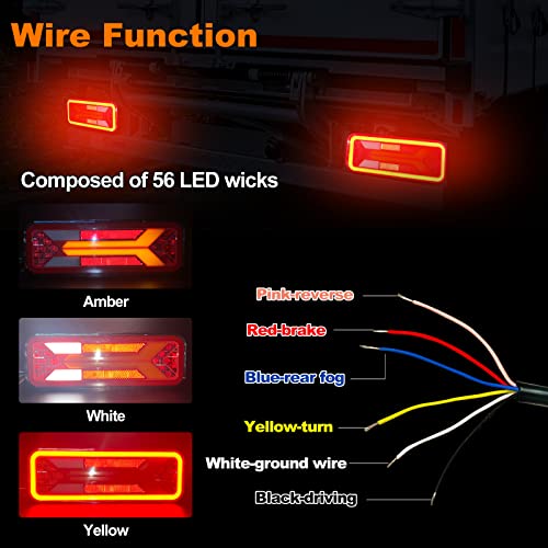 ◐ 6 HAUPTFUNKTIONEN: Seher-Rücklichter bestehen ganz 56 * 1 W LED-Leuchten mit hoher Helligkeit, die eine 360-Stufung-Weitwinkelsicht, Abbiege- oder Bremslichter mit hoher Helligkeit bieten, Sie können die Lichter alias tagsüber deutlich sehen. Bietet Ihnen 6 Hauptfahrfunktionen: Bremslicht, Blinker, Rücklicht, Rückstrahler, Seitenmarkierungslicht, Seitenreflektor (mit einem weiteren Nebelschlusslicht) mit einer Lebensdauer von über 50.000 Stunden und einer längeren Lebensdauer