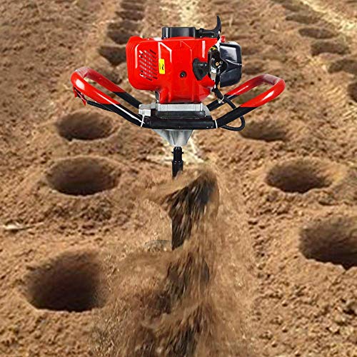 Technische Daten: Mit 3 Bohraufsätzen von 100, 150 und 200 mm. Bohrlänge: 800mm. Plus eine KOSTENLOSE 600mm Verlängerungsstange. Drehzahl: 7500 U / min. 1,2 Liter Tankinhalt, 2-Takt-Öl-Kraftstoff-diverse, 52-cm3-Benzinmotor