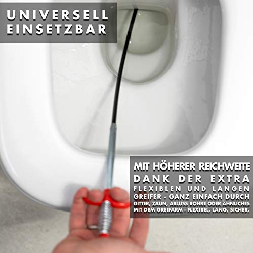 UNIVERSELL EINSETZBAR – mit höherer Reichweite dank der extra flexiblen und langen Greifer – ganz einfach durch Gitter, Zaun, Abfluss Rohr oder ähnliches mit dem Greifarm – flexibel, lang, sicher.