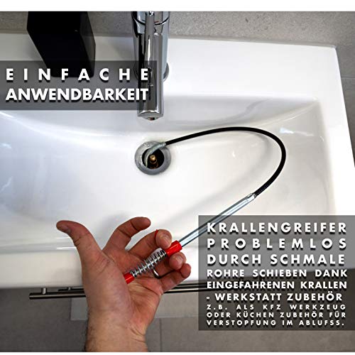 EINFACH ANWENDBARKEIT – Krallengreifer problemlos durch schmale Rohre schieben dank eingefahrenen Krallen – Werkstatt Zubehör z.B. wie KFZ Werkzeug oder Küchen Zubehör für Verstopfung Gully.