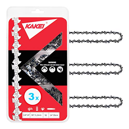 KAKEI Sägeketten 3/8″ 1,3 mm 52 TG 35 cm – 3 Stück – kompatibel mit Bosch Dolmar Makita Hitachi Echo Einhell Husqvarna und andere.