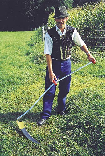 • Reichsformsense zum Schneiden seitens Pot • Länge 65 cm • max. Umfang 5,5 cm • handgeschmiedet • ölgehärtet • getupft • gewienert • geschliffen • via Rostschutzlackierung • abgesondert nachgewiesen • via Schneidenschutz • Sensenstiel: 150 cm, gebogen, pulverbeschichtet, via zwei Holzgriffen