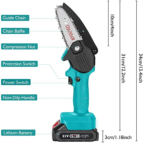 【Einhändige bedienung】 diese wiederaufladbare 4-Gebühr-holzschneide-kettensäge ist mit einem 0,7 kg schlanken körper, klein, bequem zu halten und bequem zu erreichen. Es kann mit einer hand verwendet werden und ist für den langfristigen gebrauch nicht leicht zu ermüden. Sehr gut geeignet für familie und gelegenheitsarbeit, auch frauen können es problemlos prüfen.