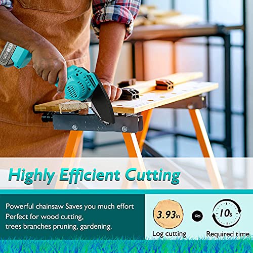 【Upgrade sicherheit】 die verbesserte akku-Kettensäge verfügt über eine abnehmbare spritzschutzwand, um zu verhindern, dass das sägemehl beim holzfällen und mähen von Ästen spritzt. Diese batteriebetriebene kettensäge eignet sich sehr gut zum holzschneiden, gartenscheren, beschneiden von Ästen usw.