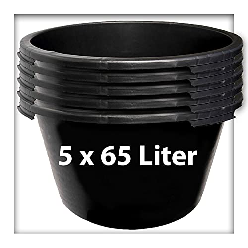 Kieskönig 5 STK. 65 Liter Mörtelkübel Pflanzwanne Mörtelkasten Zementkübel Maurerkasten rund