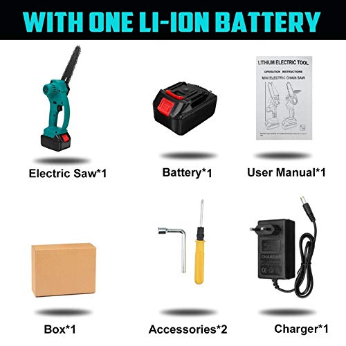 Die tragbare Kettensäge ist mit einem wiederaufladbaren Akku ausgestattet, sodass es etwa lange Zeit ständig in hoher Leistung tätig ist.Premium-Batterie verlängert seine Lebensdauer erheblich, es ist nicht andererseits sehr bequem zu nutzen und zu berechnen, sondern vulgo eine wirtschaftliche und praktische Weise für Sie. (Hinweis: Bitte laden Sie es einmal im Monat auf, wenn er nicht verwendet wird).