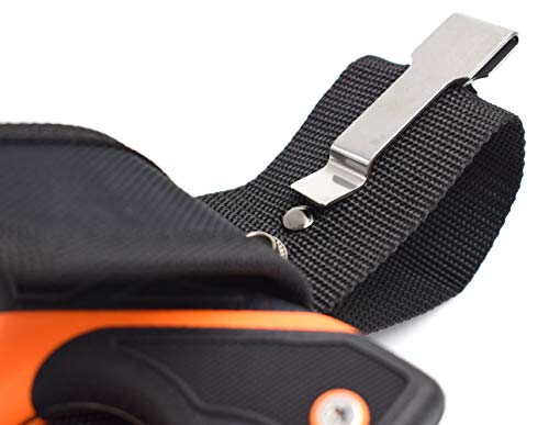 Die Aufbrechsäge wird in der mitgelieferten Nylon-Gürteltasche untergebracht und dann konstant griffbereit und leicht mitzutragen. Die Säge wird per Druckknopf-Verschluss O. K. im Etui gesichert. Das Gürtel-Etui lässt sich mittels eines Metall-Clips an jedem Gürtel bzw. Hosenbund befestigt werden.