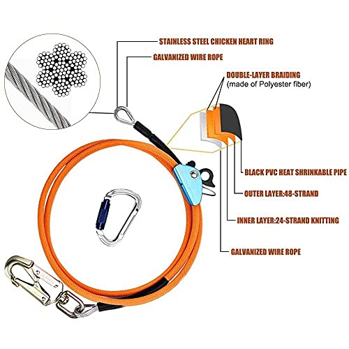 Leicht einstellbar – der Kletterfliplinerlanyard wird mit Triple Lock Carabiner und Swivel-Snap verschlossen, leicht einstellbar. Bereitstellung einer zusätzlichen Sicherheit beim Umgang mit Kettensägen.