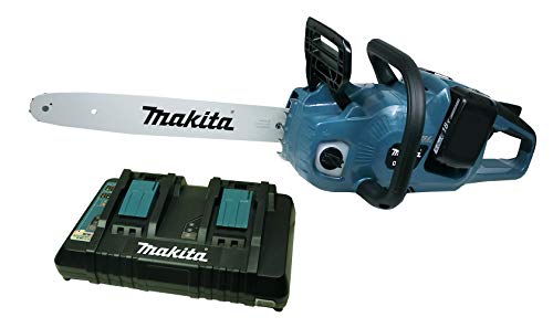 Die DUC 353 Kettensäge überzeugt durch kraftvollen 36-Volt Aggregat und eine außergewöhnlich kompakte Bauweise. Die global einsetzbare Säge ist durch den Akkubetrieb sonderlich umweltfreundlich und durch die sonderlich schnelle Kettengeschwindigkeit ist ein schneller und sauberer Arbeitsfortschritt garantiert. Der bürstenlose Maschine ist beinahe wartungsfrei und sorgt mit dem kompakten, robusten und Unrat- und Spritzwasser Gehäuse für eine erhöhte Lebensdauer. Die optimale Gewichtsverteilung, die automatische Kettenschmierung und die automatische Akkuanzeige stehen für hohen Komfort und die elektrische Motorbremse und der Rückschlagschutz machen das Rödeln mit der DUC 353 Kettensäge außergewöhnlich zäh. Technische Daten Kettengeschwindigkeit: 0 – 20 m/s Schnittlänge: 35 cm Kettenteilung 3/8′ Treibgliedstärke: 1.1 mm Öltank: 200 ml Akkuspannung: 2x 18 V Makita DC 18 RD Schnell-Akkuladegerät Mit dem 2-fach Akkuladegerät von Makita können 2 Akkus gleichzeitig geladen werden. In der von Makita gewohnten schnellen Ladezeit Mit USB-Anschluss zum Laden für Smartphones
