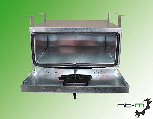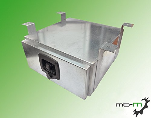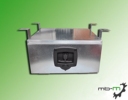 Werkzeugkasten allesamt verzinktem Stahlblech. Inkl. Gummiverdichtung. Via punktgeschweißten Bügelhaltern. Kunststoffverschluss Via Schloss. Außenmaß = 400 x 180 x 420 mm. Rein zum Verstauen von Werkzeugen, Transportsicherungen oder anderem Zubehör. Wird speziell daneben Karre-Anhängern eingebaut, da an dieser Stelle keine Verstaumöglichkeiten sondern Zurrgurte oder anderem Zubehör anwesend ist.
