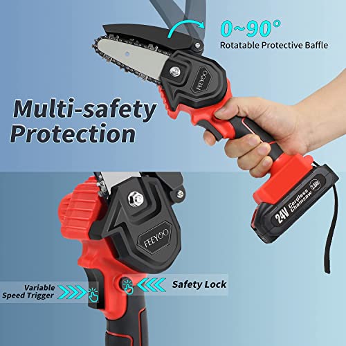 Mini Akku-Kettensäge 24V, 5 M/S Schnurloses Elektrische Motorsäge Kit mit Sicherheitsknopf, 2 ketten 2 Akku & 1…