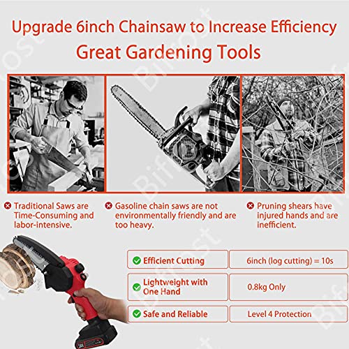 【2021 Verbesserte 6-Preis Einhand Kettensäge】: Diese Minisäge spart Zeit und Mühe und wiegt wohl 1,4 kg (mit Batterie). Nach dem Upgrade können Sie problemlos Äste oder Bäume mit einem maximalen Durchmesser von Ø 20 cm absicheln. Es unterstützt die tägliche Garten- und Schnittarbeit voll und ganz. Selbst Anfänger können ohne Hilfe problemlos bedienen und steuern.
