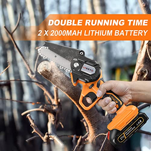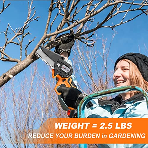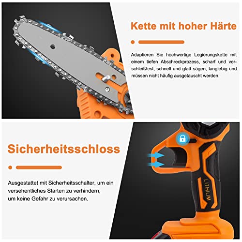 Mini Kettensäge mit Akku, 4inch Einhand Kettensäge Elektro mit 2 ketten & Zwei Stück 2.0Ah Akku & Schnell Ladegerät Für…