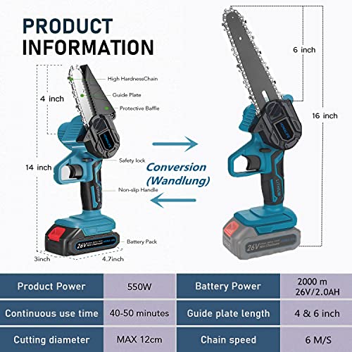 Mini Kettensäge mit Akku 6 Zoll und 4 Zoll 26v 2-in-1 Mini Elektrische Kettensägen-set, tragbar Kettensäge Elektro für…