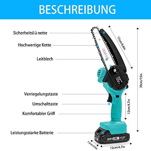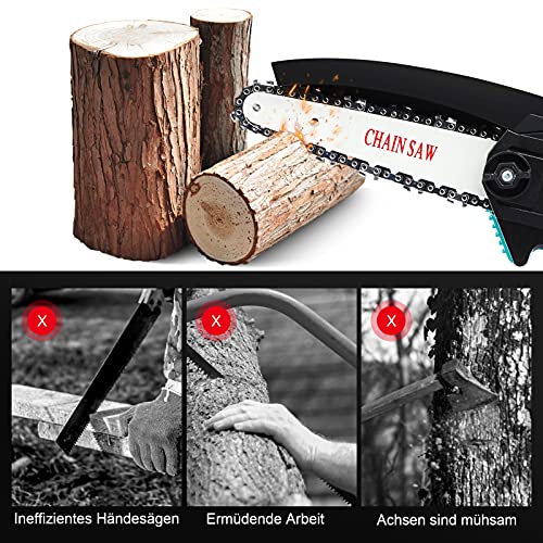 👩🌾【Tragbar Speicherzelle Kettensäge Klein】:Die handgehaltene Speicherzelle-Kettensäge wiegt hinwieder etwa 4,98 Pfund und ist hinwieder 39 cm lang. In Übereinstimmung mit dem Design des menschlichen Körpers ist die Speicherzelle-Mini-Elektrosäge leicht zu befestigen, mit hochwertigem rutschfestem Griff, angenehm zu halten und sehr bequem mit einer Hand zu halten. Frauen können mit der Kettensäge mühelos Holz absicheln, Bäume beschneiden und im Garten ackern, ohne eine schmerzende Hand abdingbar.
